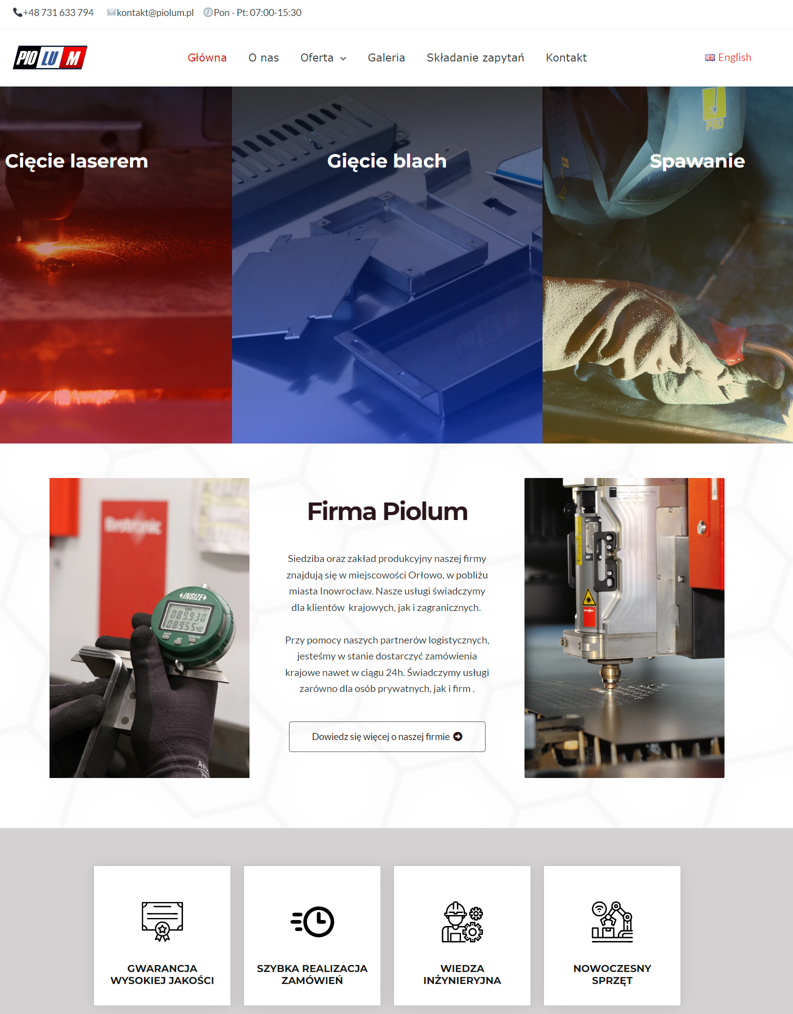 //...firmowa strona internetowa firmy, która oferuje wsparcie technologiczne oraz usługi wchodzące w zakres obróbki metali: cięcie laserem, gięcie blach, spawanie